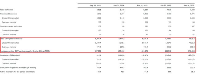 黄鸿飞在电话会上指出,尽管门店持续扩张,但公司意识到现有门店GMV面临压力,国内和海外同店销售额分别下降27.9%和23.4%,主要受去年同期高基数及竞争压力加剧影响。但加盟商基本面保持稳健,门店关闭率持续处于低位,预计短期内同店GMV增长仍将面临压力。